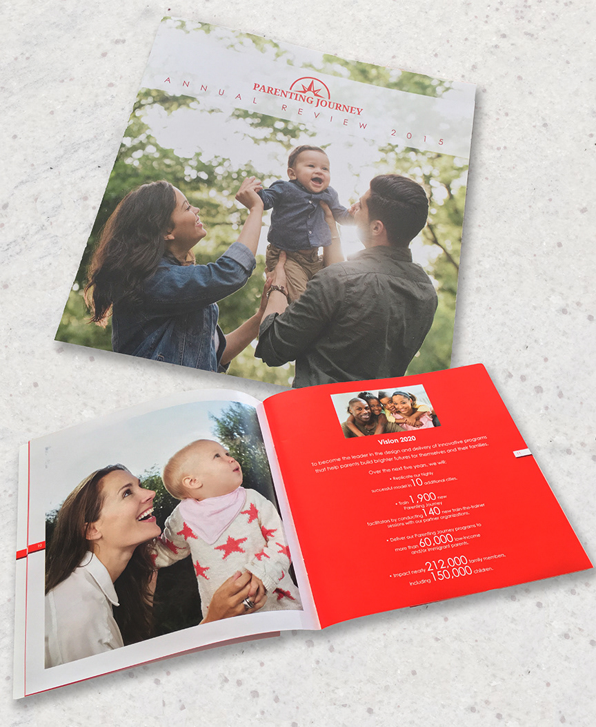 Annual report booklet for non-profit organization Parenting Journey. Layout, design, production.